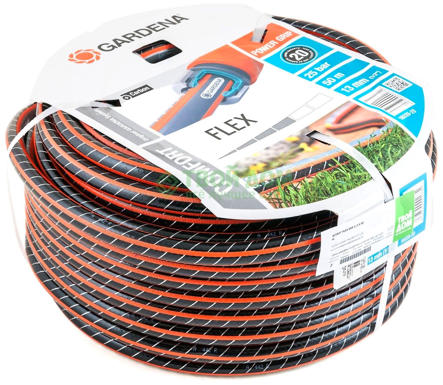 Шланг для полива GARDENA Flex является частью базовой системы полива с фирменными коннекторами. Благодаря спиралевидному текстильному армированию и толстым стенкам шланг выдерживает давление до 25 бар, сохраняет форму, долго служит.