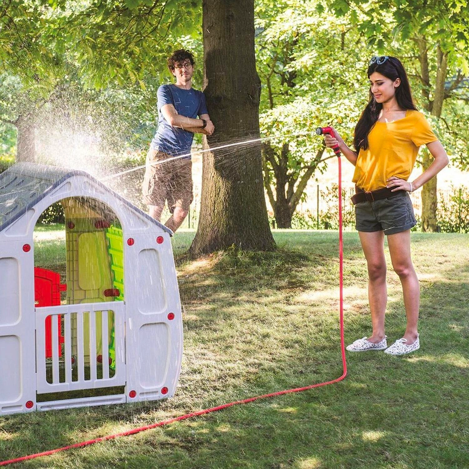 Шланг YOYO UP - инновационная система полива с соединителями и многоструйным разбрызгивателем.