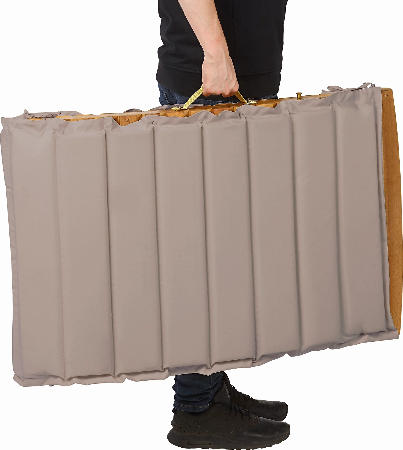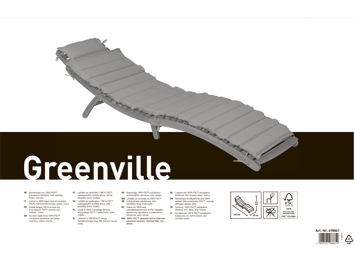 Складной шезлонг Greenville изготовлен из натуральной древесины. Плавные линии повторяют изгибы тела, мягкий матрас обеспечивает максимальный комфорт и расслабление.