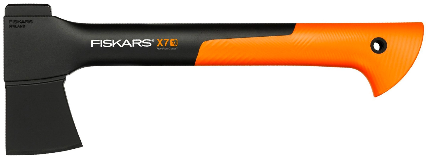 FISKARS XS Х7 - легкий компактный топор для рубки веток, сучьев, заготовки щепы. Инструмент выполнен из прочных современных материалов, имеет пластиковый защитный чехол на лезвие.