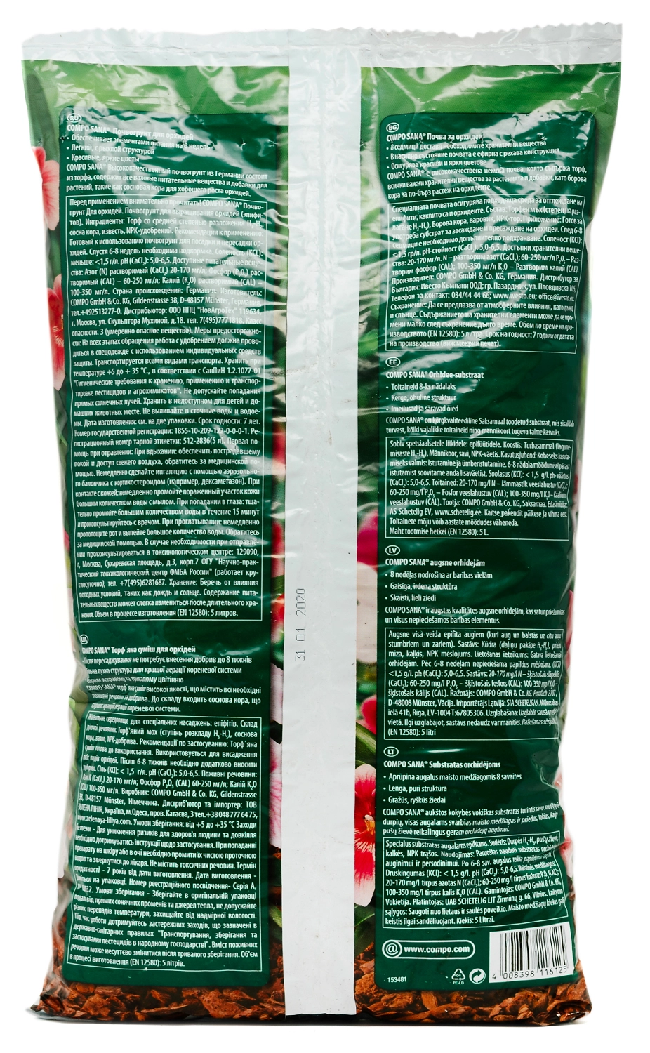 Применяется для всех видов орхидей (эпифитов).Почвогрунт Compo Sana поставляется производителем уже готовым к использованию.