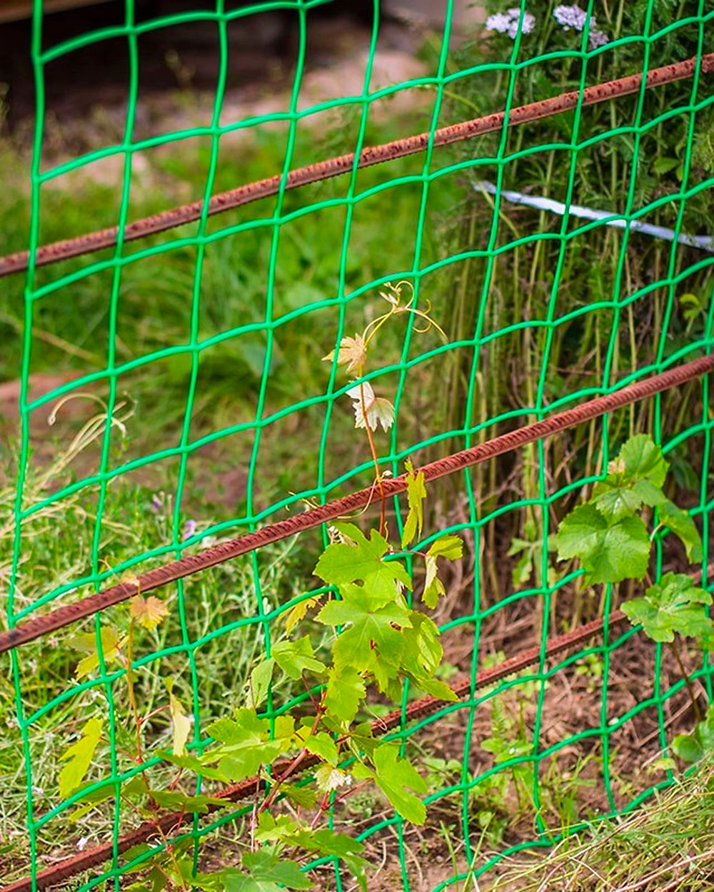 Сетка садовая пластиковая. Используется для поддержки вьющихся растений, изготовления арок, пергол. Цвет хаки - зеленый, двухцветная. Размер 1 х 10 метров.Размер ячейки 45 х 50.