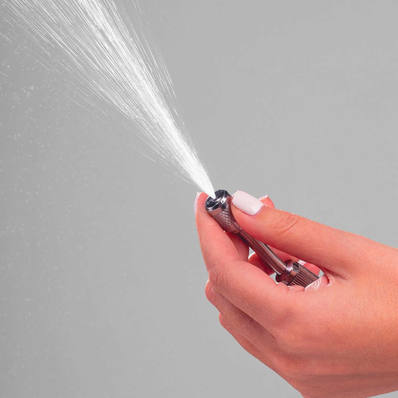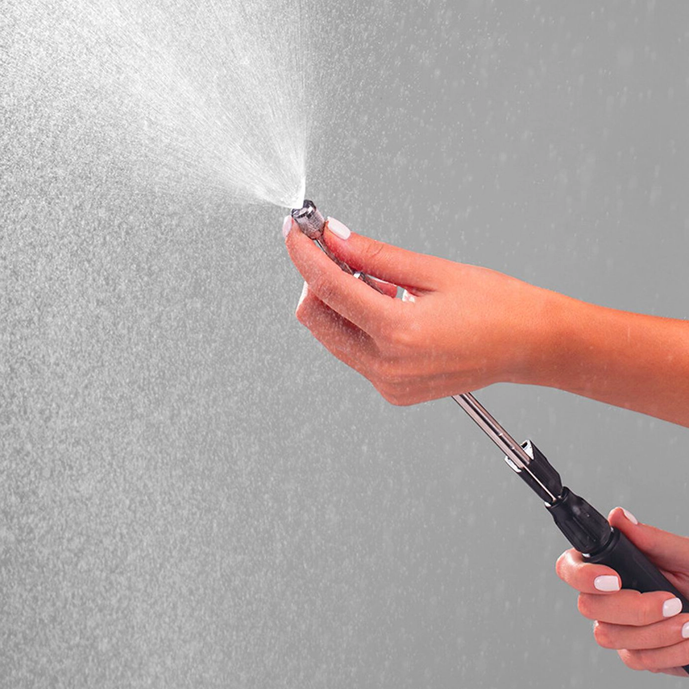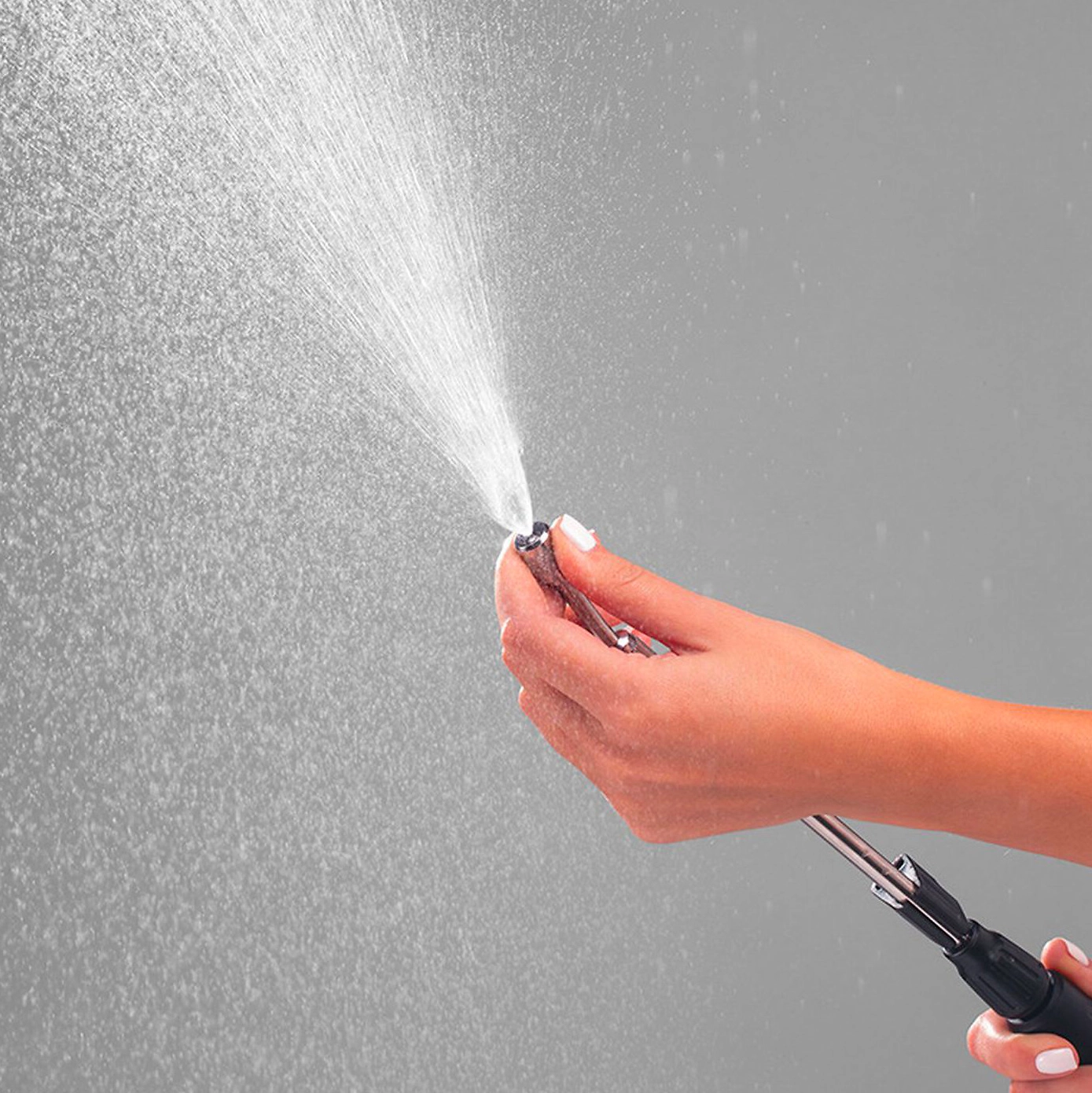 - Телескопический металлический брандспойт позволяет дотянуться до высоких веток.