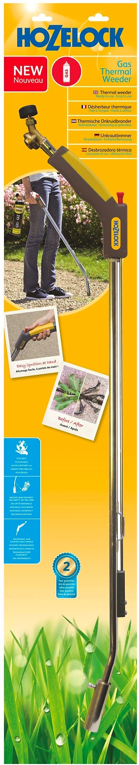 Уничтожитель сорняков HOZELOCK газовый 4000 Вт - эффективное устройство для борьбы с сорными растениями, оснащенное горелкой с пьезозажиганием.