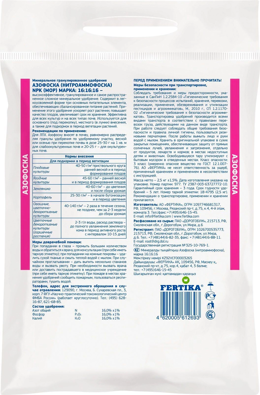 FERTIKA Азофоска - универсальное азотно-фосфорно-калийное удобрение для питания всех садовых культур, увеличения урожая, срока хранения и качества плодов.