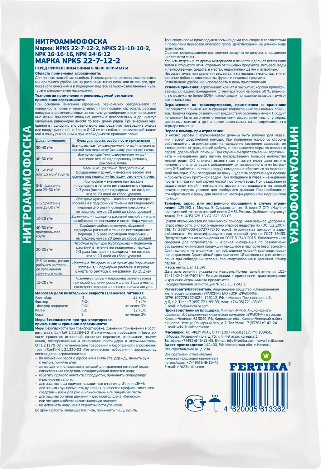 - Универсальное сложное азотно-фосфорно-калийное удобрение