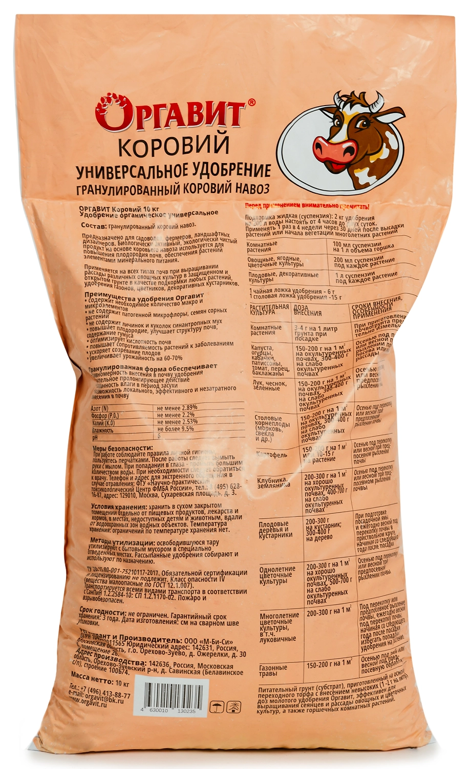 Удобрение навоз коровий ОРГАВИТ гранулы 10 кг