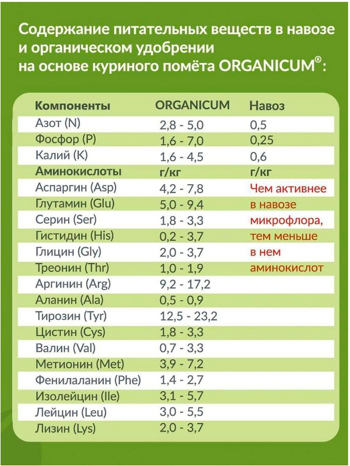Комплексное концентрированное универсальное органическое удобрение НОВОГО ПОКОЛЕНИЯ ORGANICUM c уникальной дозой внесения 50 грамм на 1 м.кв. Содержимого ведерка весом 0,7 кг хватит для внесения примерно на 14 м.кв грунта или 45 лунок. Содержит следующие полезные и питательные вещества: азот, фосфор, калий, аспаргин, глутамин, серин, гистидин, глицин, треонин, аргинин, аланин, тирозин, цистин, валин, метионин, фенилаланин, изолейцин, лейцин, лизин. В форме — гранул, толщиной 6 мм. Безвредно и безопасно. Удобрение вносится сплошным способом для моркови, свеклы, кабачков, картофеля, кустарников, плодовых деревьев, газонных трав, и луночным способом для томатов, огурцов, перца.