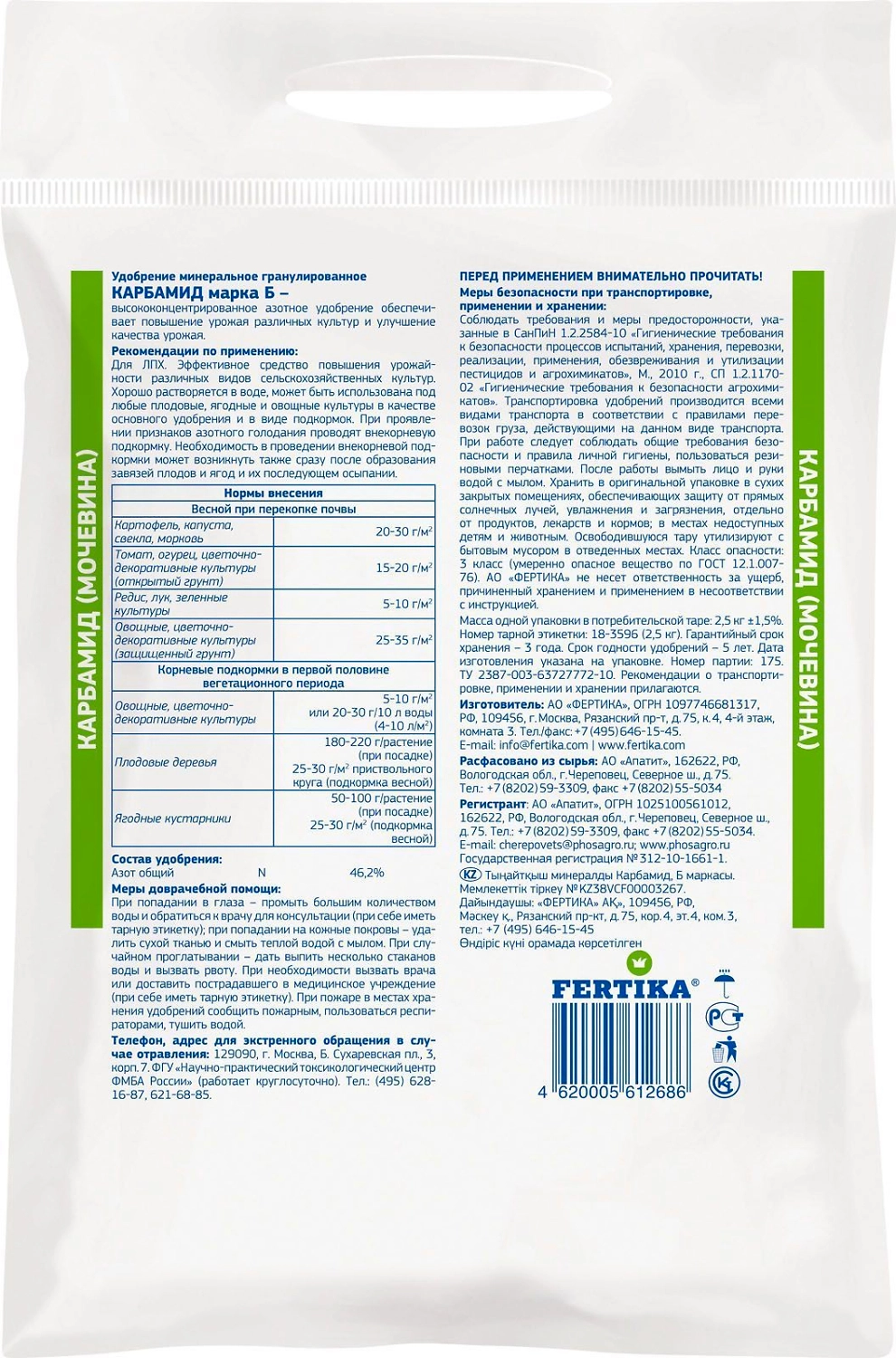 FERTIKA Карбамид (мочевина) - концентрированное азотное удобрение для повышения урожайности различных сельскохозяйственных культур.