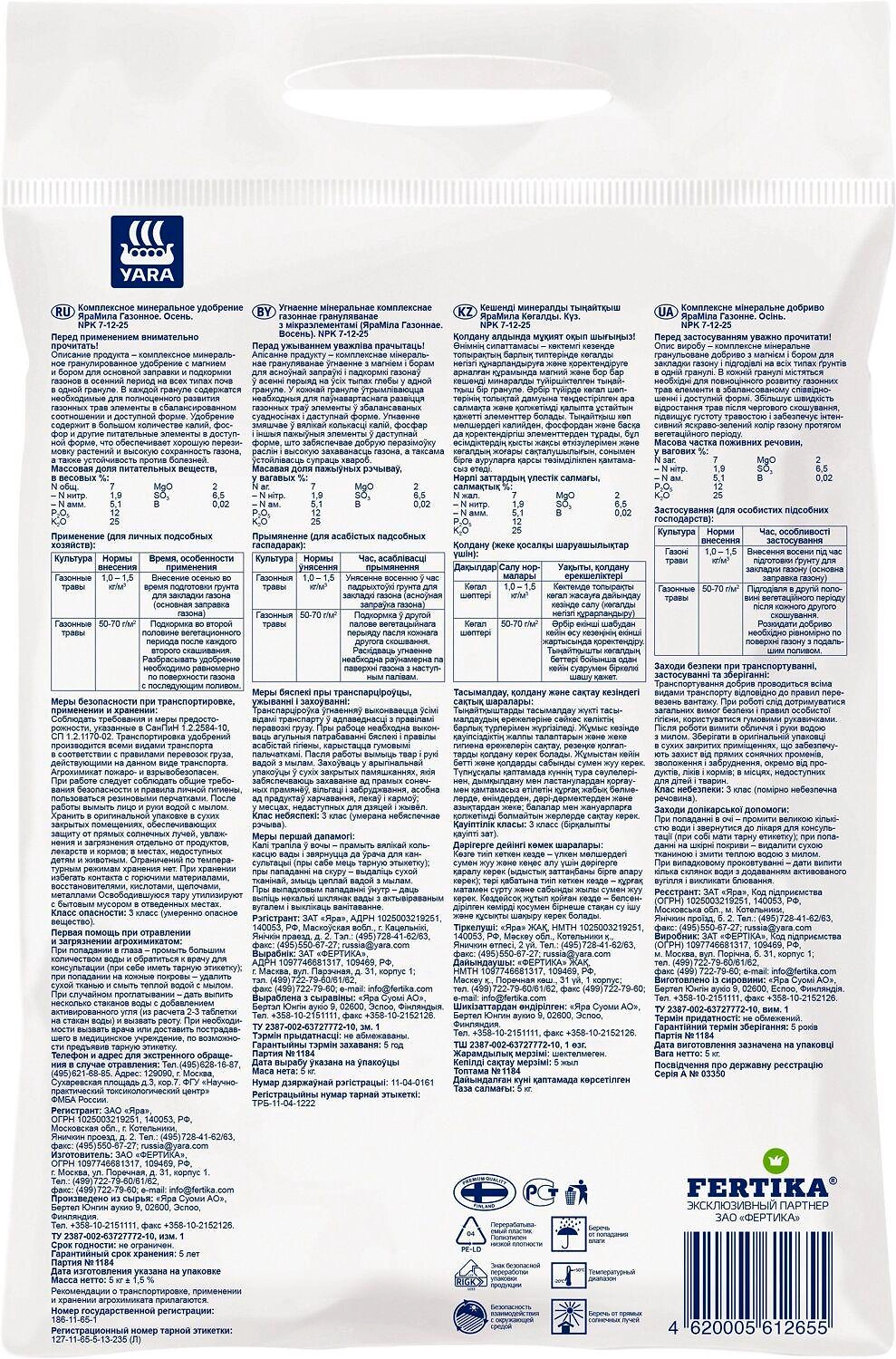 Удобрение комплексное YaraMila ОСЕНЬ для газонов 5 кг