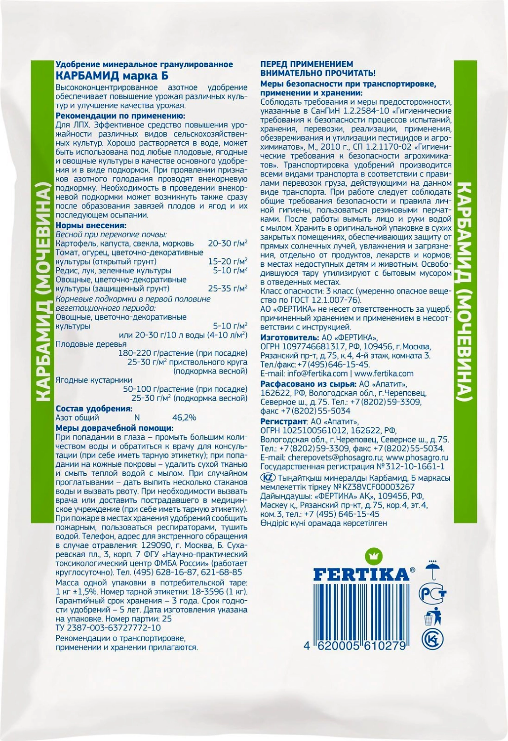 FERTIKA Classic Карбамид - азотное минеральное удобрение для улучшения роста и повышения урожайности садовых культур.