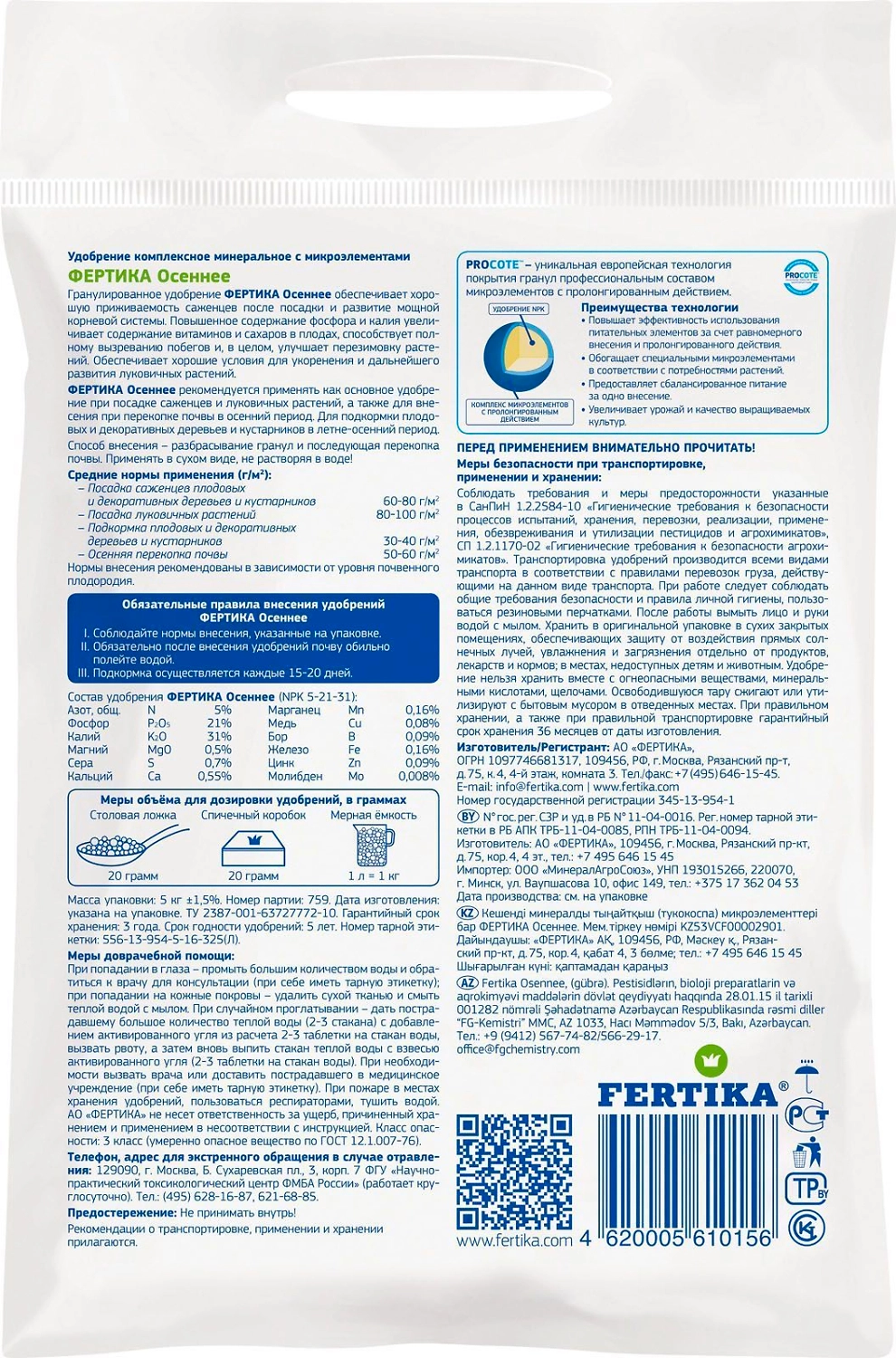 FERTIKA Осень - комплексная минеральная добавка для подкормки садовых культур.