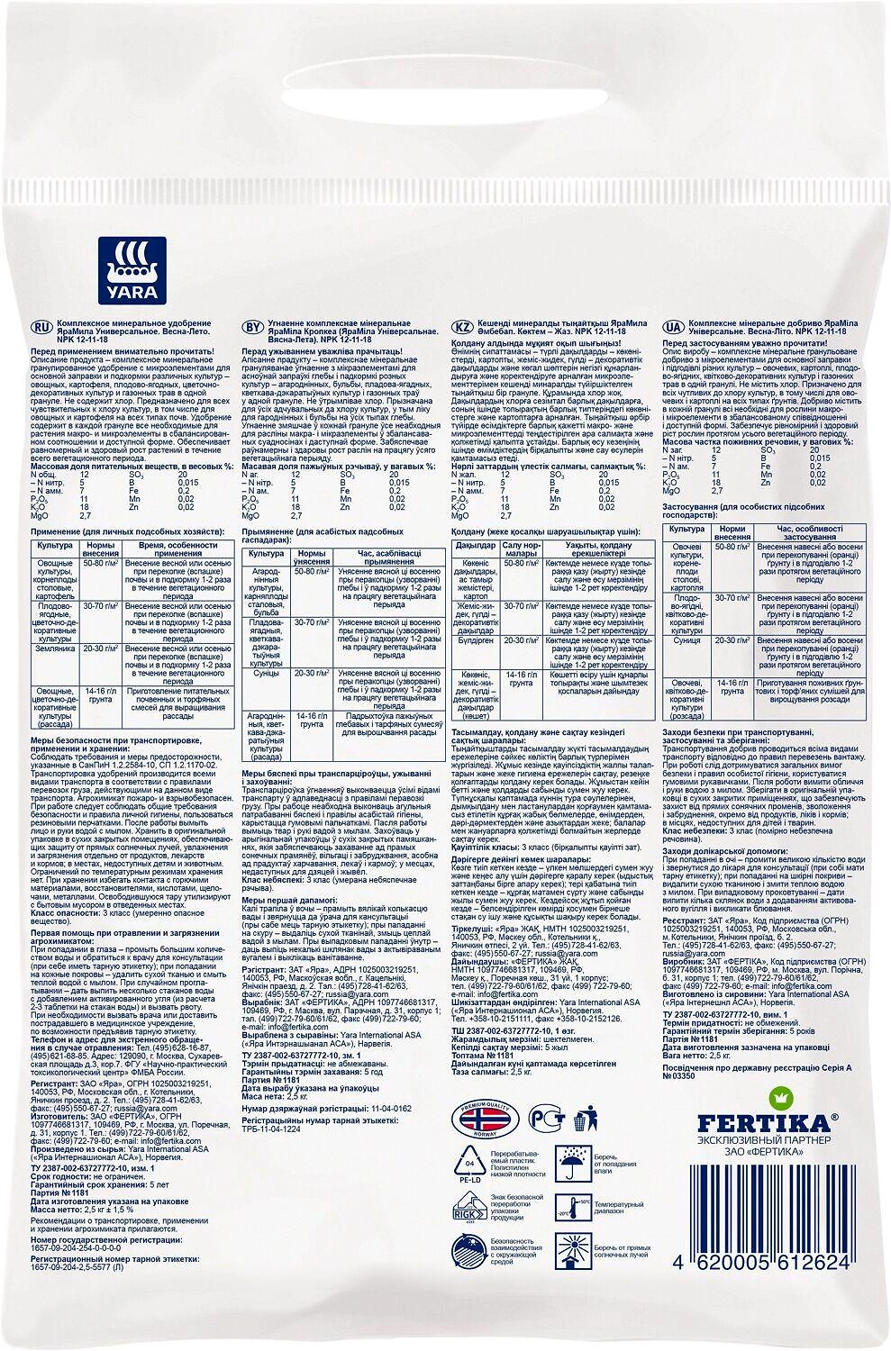 Удобрение минеральное YaraMila Универсальное 2,5 кг