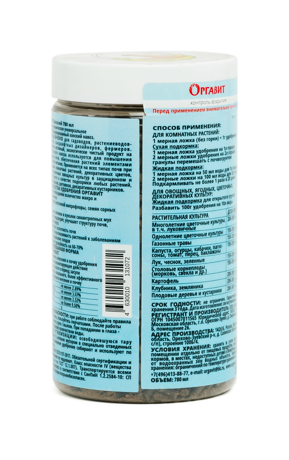 Удобрение навоз конский ОРГАВИТ гранулы 750 гр