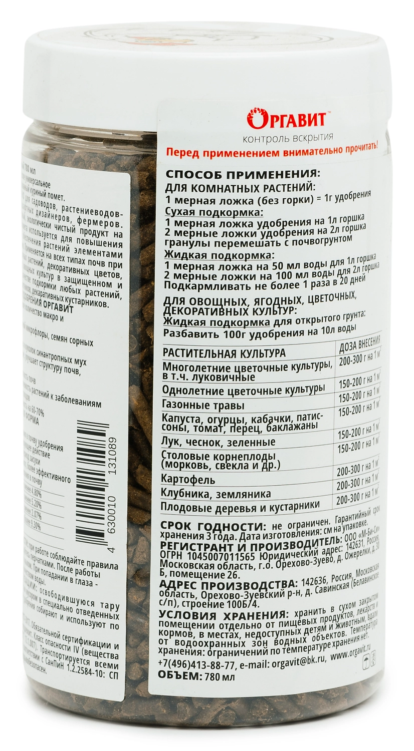 Удобрение помет куриный ОРГАВИТ гранулы 750 гр