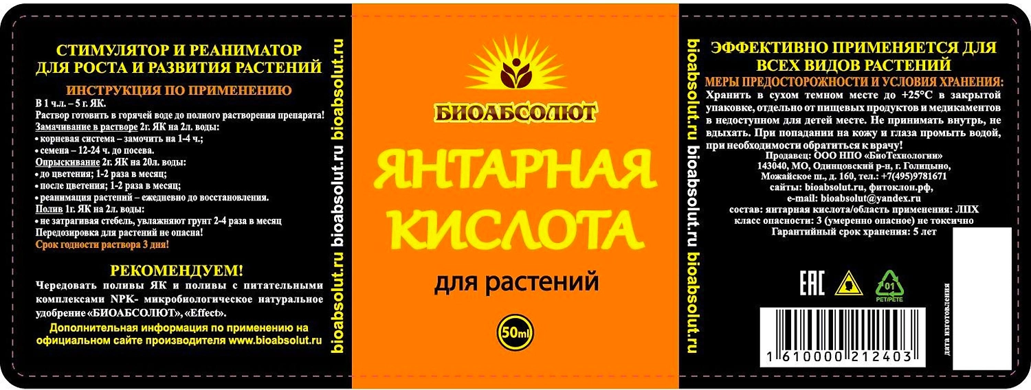 Янтарная кислота БИОАБСОЛЮТ универсальное удобрение - стимулятор, реаниматор
