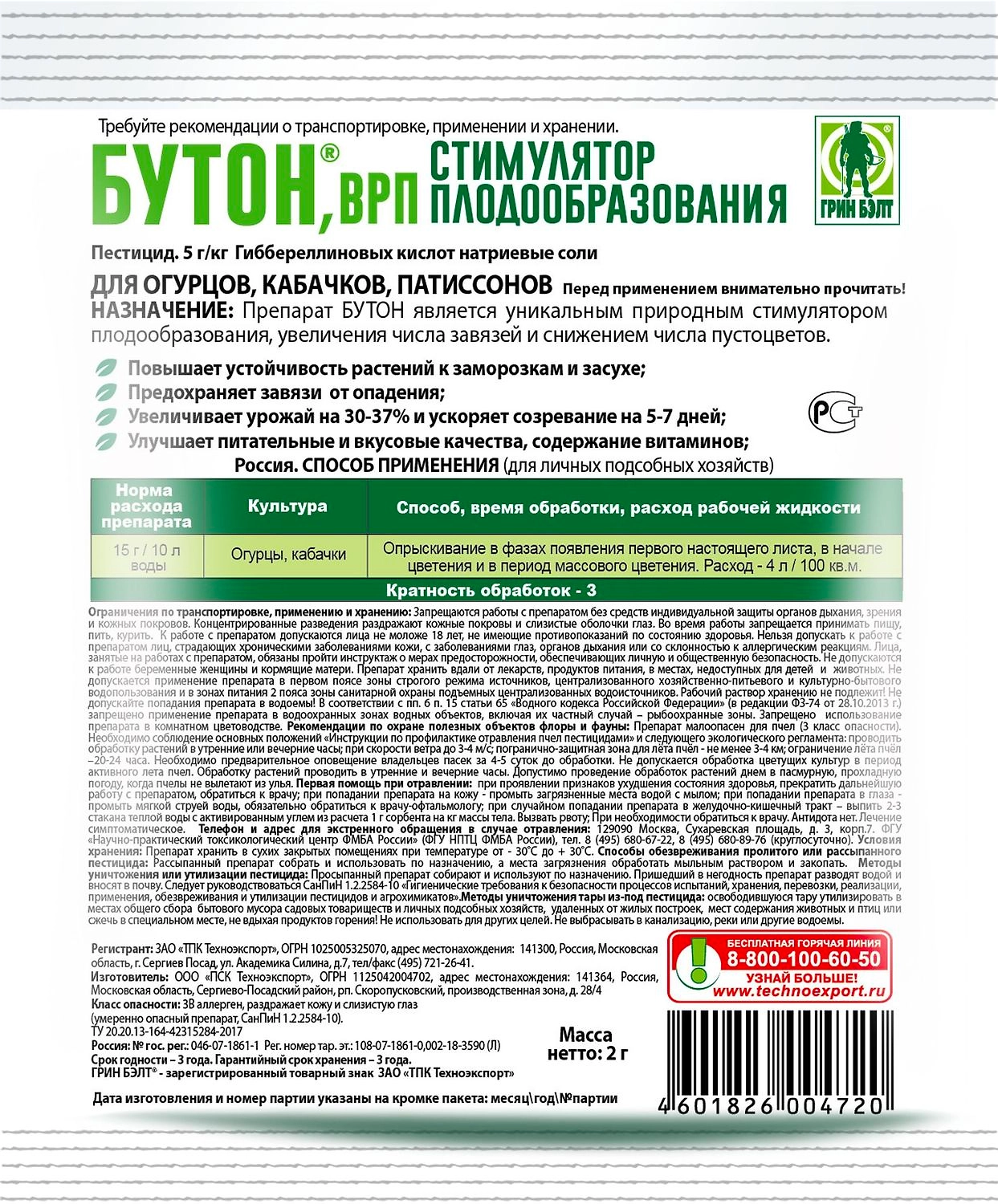 Регулятор роста GREEN BELT Бутон для огурцов 2 г