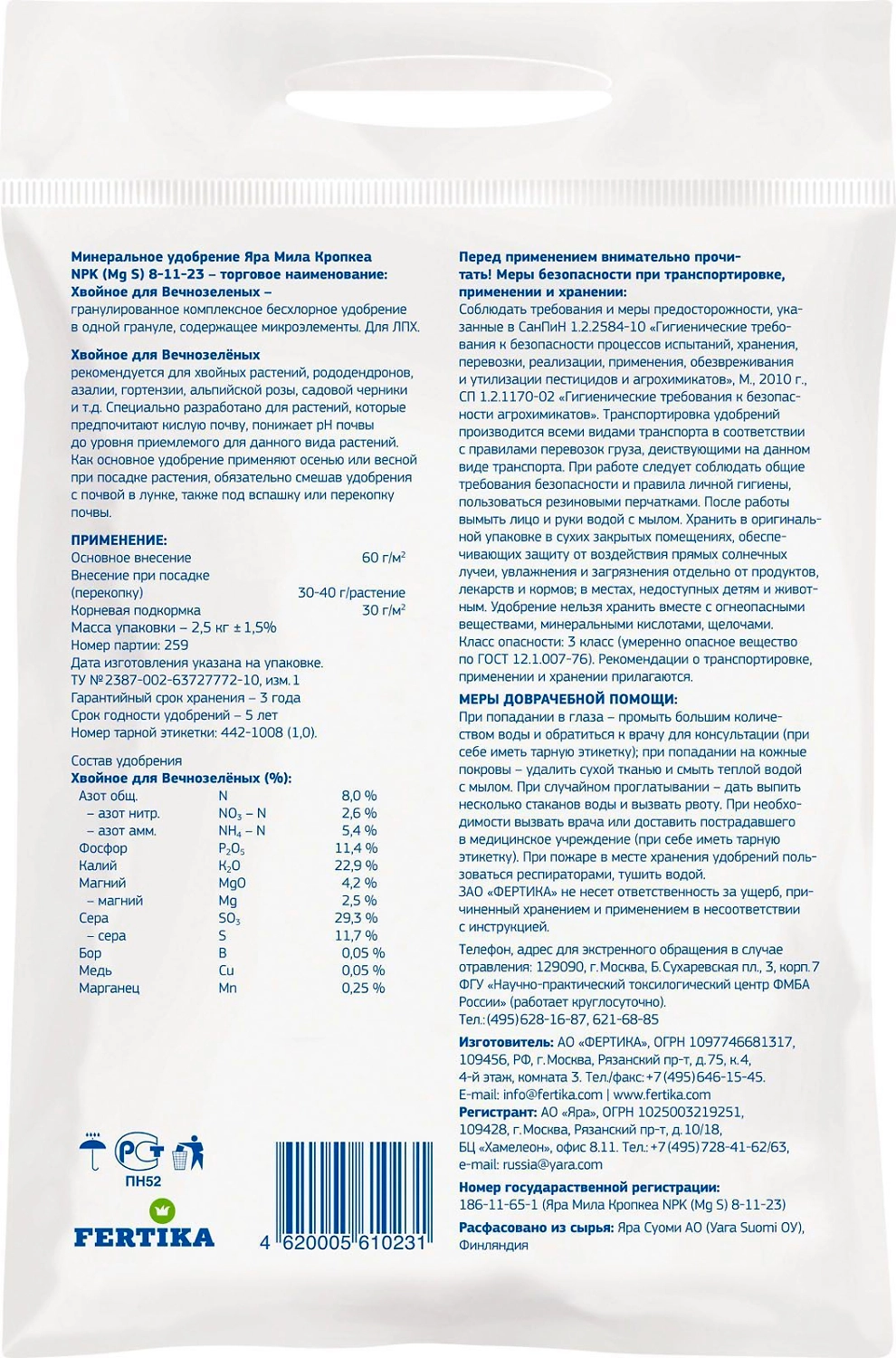 Торговая марка FERTIKA принадлежит компании ЗАО "Фертика". Удобрения производятся из высококачественного, экологически чистого сырья, поставляемого норвежским предприятием YARA International ASA.