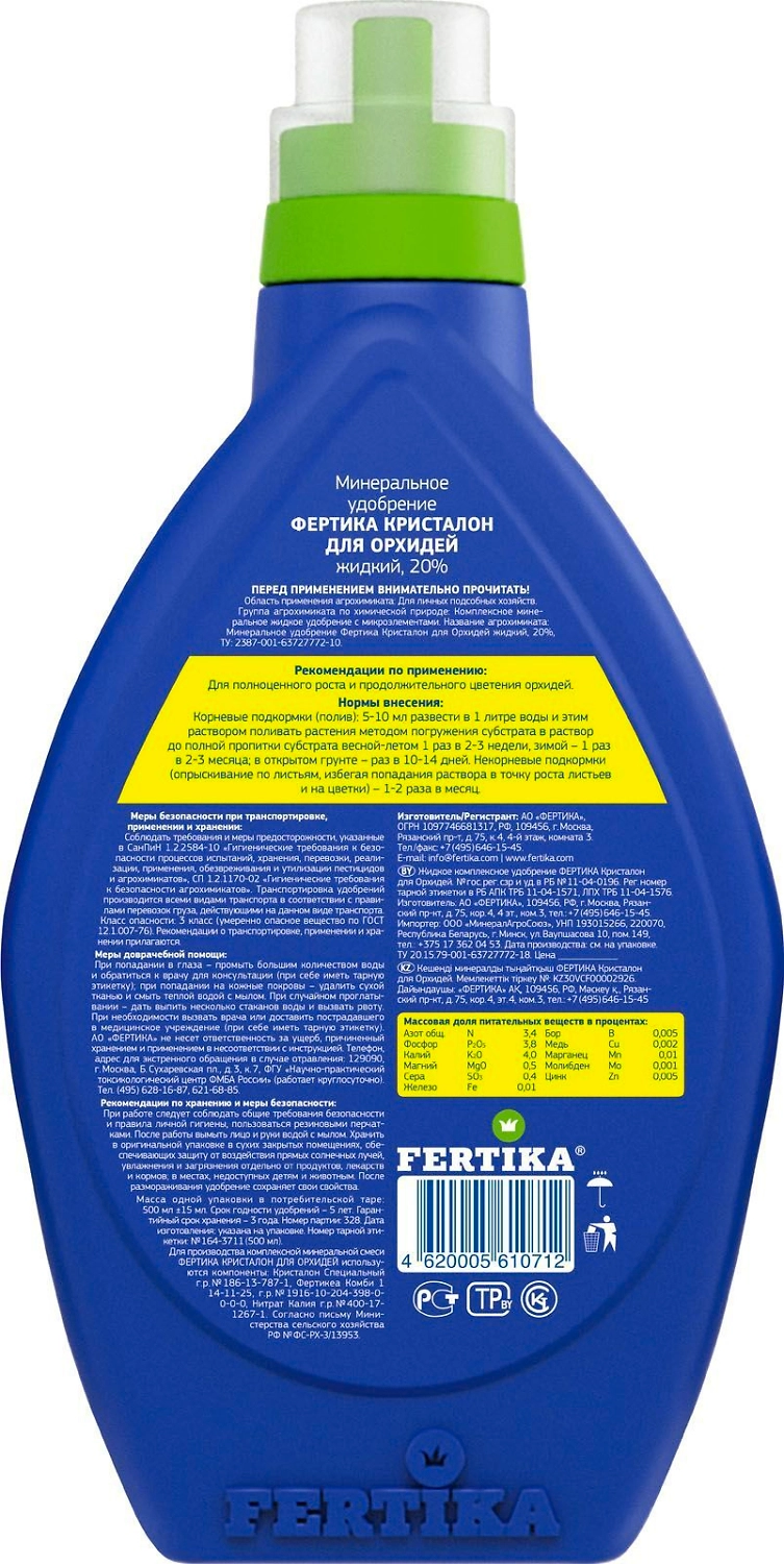 FERTIKA Кристалон - комплексное жидкое удобрение для улучшения роста орхидей.