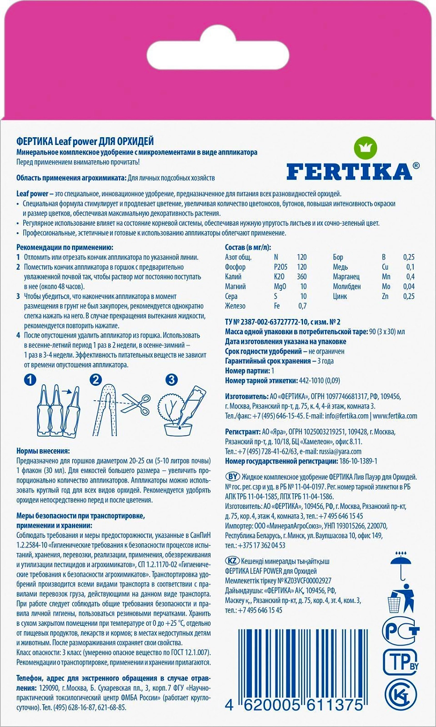 Минеральный комплекс Фертика Leaf Power предназначен для питания всех разновидностей орхидей.