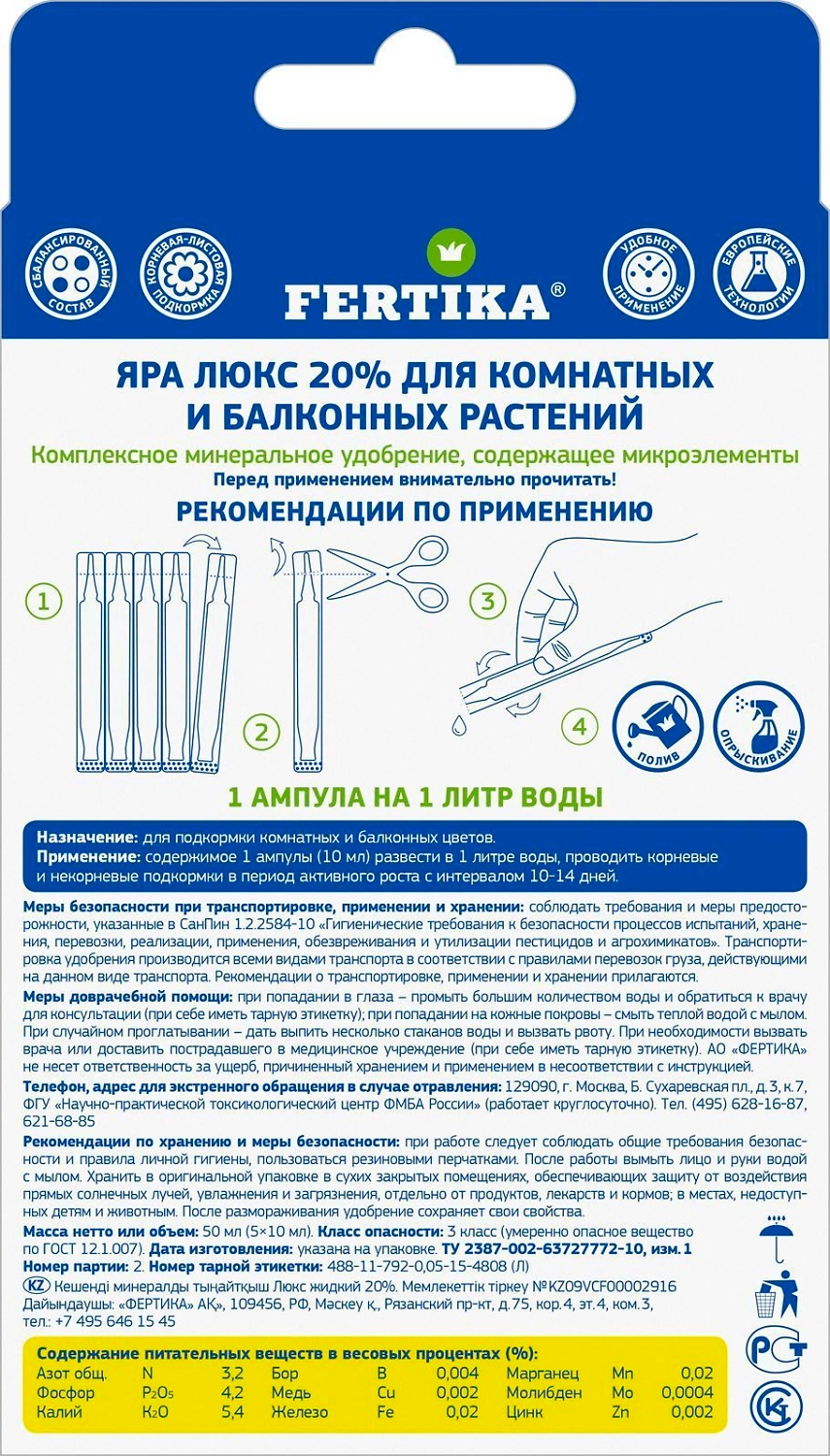 Удобрение комплексное FERTIKA Люкс для комнатных и балконных 5 ампул по 10 мл