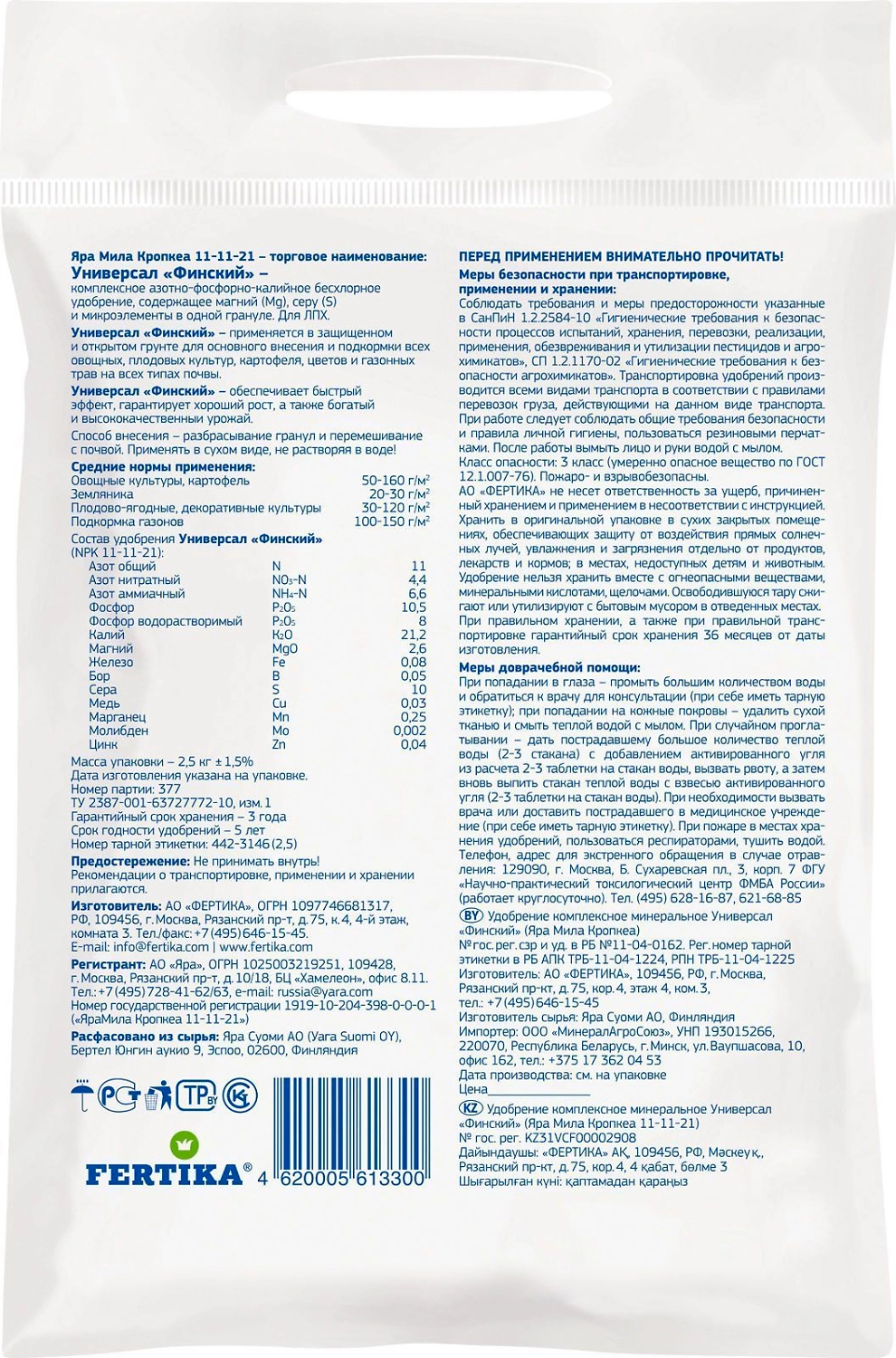 - Состав включает все необходимые макро- и микроэлементы в легкодоступной, растворимой форме.