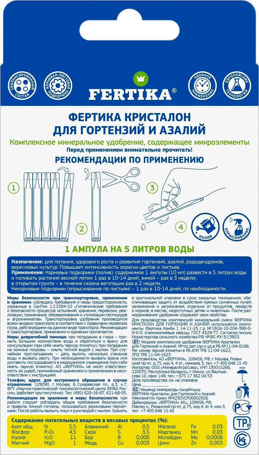 Удобрение минеральное Fertika Кристалон для гортензий и азалий 10 мл