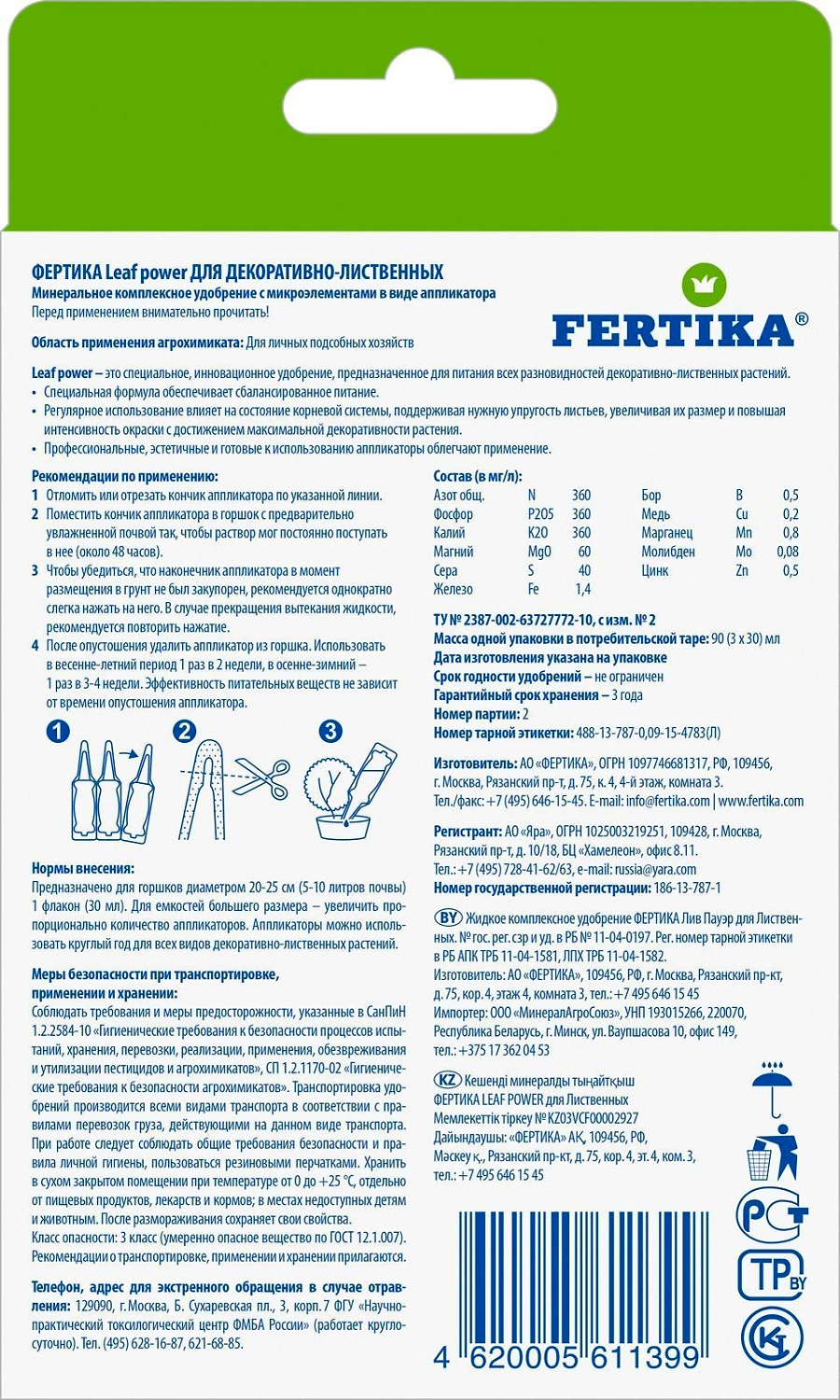 Удобрение минеральное FERTIKA LEAF POWER для лиственных культур 90 мл