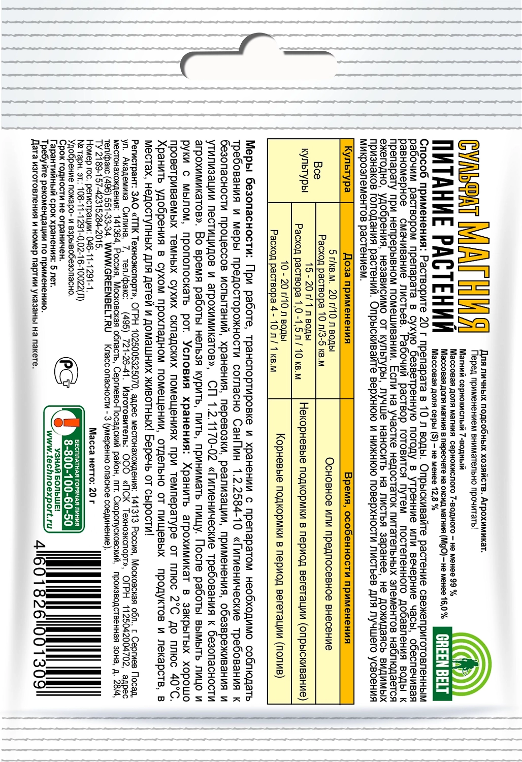 Удобрение минеральное GREEN BELT 20 г
