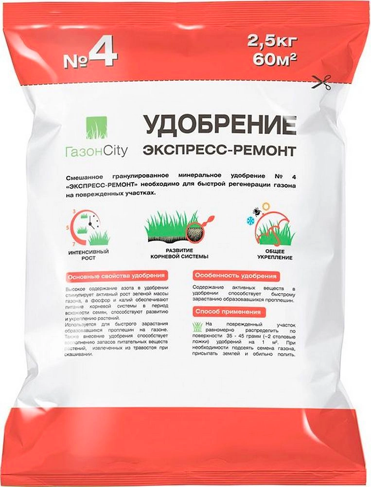 Удобрение комплексное ГазонCity ЭКСПРЕСС-РЕМОНТ №4 для газонов 2,5 кг