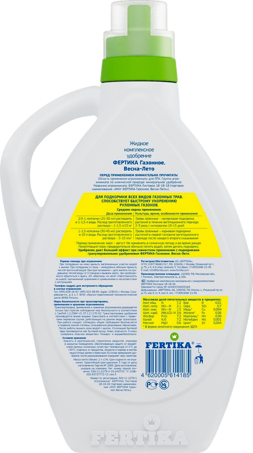 Удобрение газонное FERTIKA весна-лето 2 л