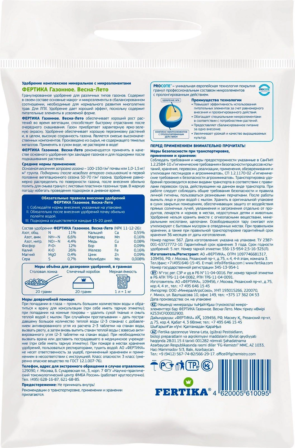 Удобрение минеральное FERTIKA Весна-Лето для газонов - это оптимально сбалансированная смесь, содержащая азот, фосфор, калий, комплекс макро- и микроэлементов, которые способствуют росту здорового,