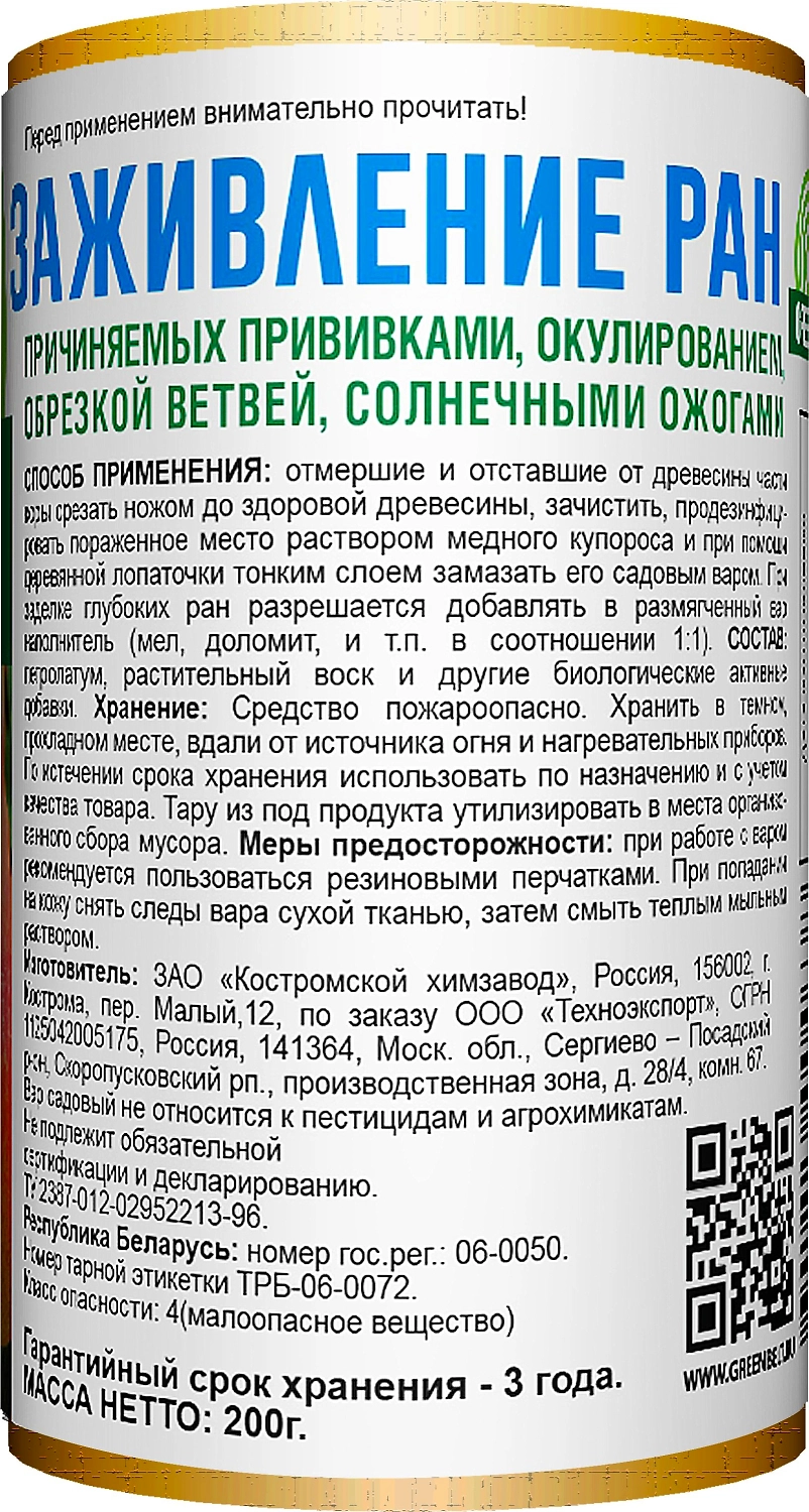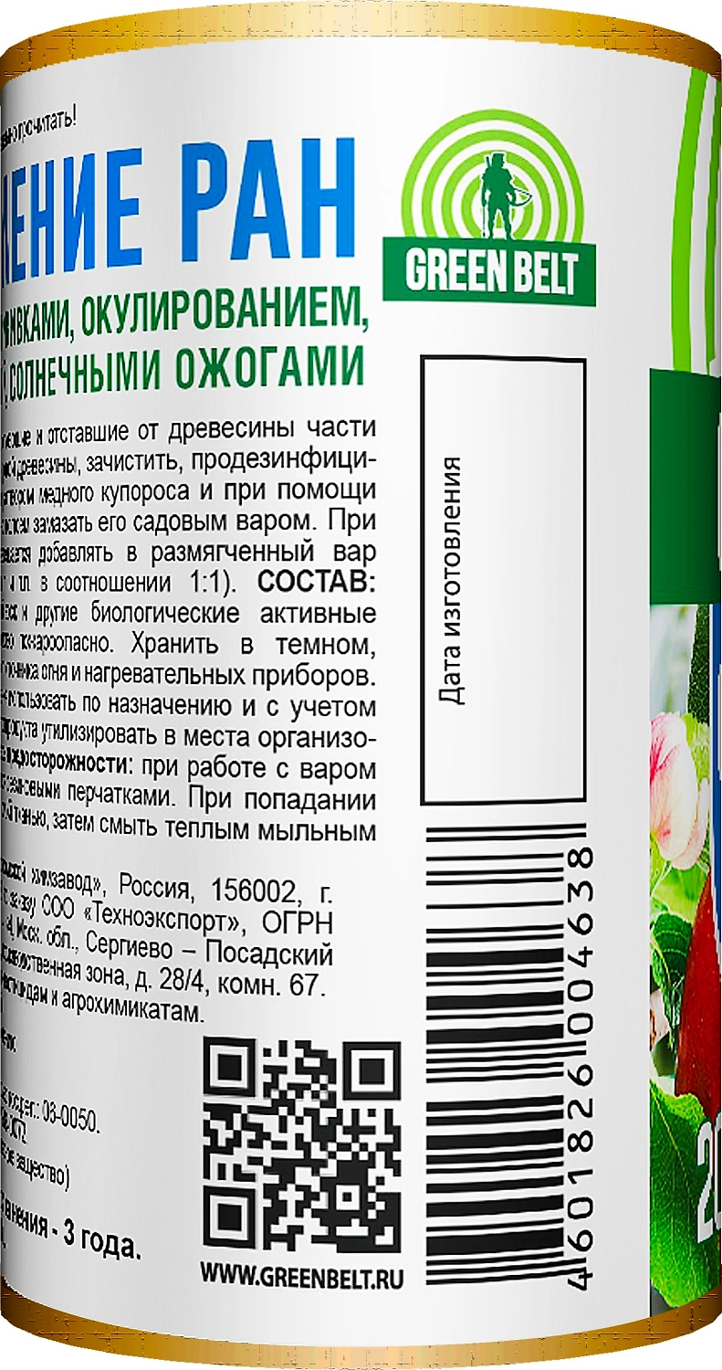 Садовый вар GREEN BELT - состав предназначенный для обработки и дезинфекции срезов, спилов и других ран деревьев.