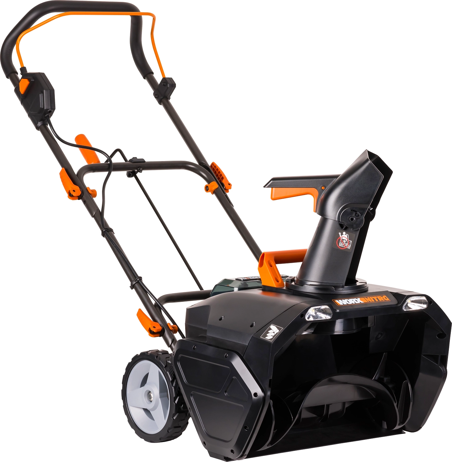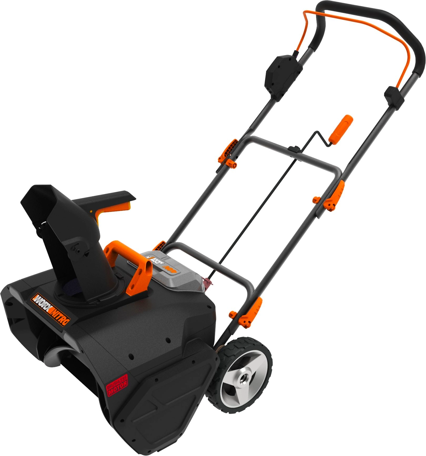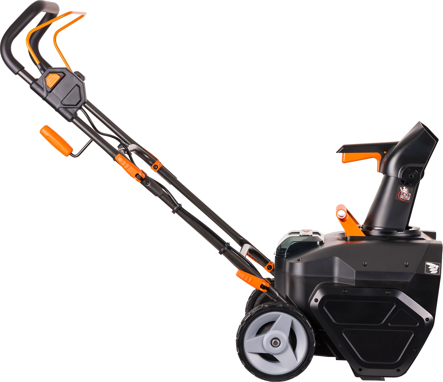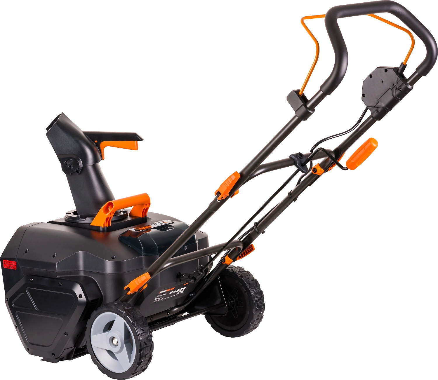 Worx WG471E - компактный аккумуляторный снегоуборщик, который способен длительное время убирать свежевыпавший снег.
