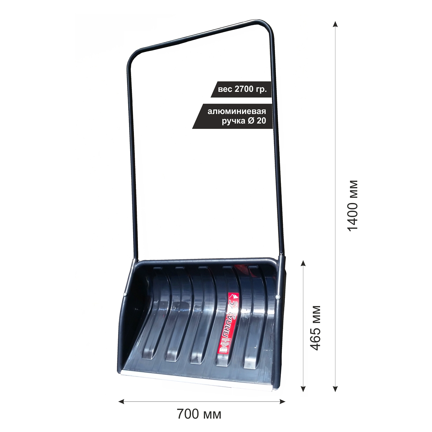 Скрепер предназначен для уборки снега на больших территориях, во дворах и на прилегающих к дому участках. Ковш скрепера выполнен из полипропилена спец. марки и усилен рёбрами жесткости, что позволило добиться прочности и износостойкости изделия. Кромка скрепера защищена алюминиевой профильной планкой, позволяющей изделию служить дольше. Поверхность ковша скрепера гладкая, за счет постоянного контроля за состоянием оснастки, что значительно снижает вероятность налипания снега. Данный скрепер имеет оптимальное соотношение габаритов ковша (ширины, глубины и высоты) и диаметра и высоты стальной П-образной ручки. Соединение ковша скрепера с ручкой происходит с помощью надёжного крепления гайка-болт. Работать данным движком будет удобно за счет цельной П-образной ручки, снижающей нагрузку на позвоночник. Общая высота- 1400мм, ковш - 700\*465мм (ш\*в). Диаметр ручки трубы - 20мм.
