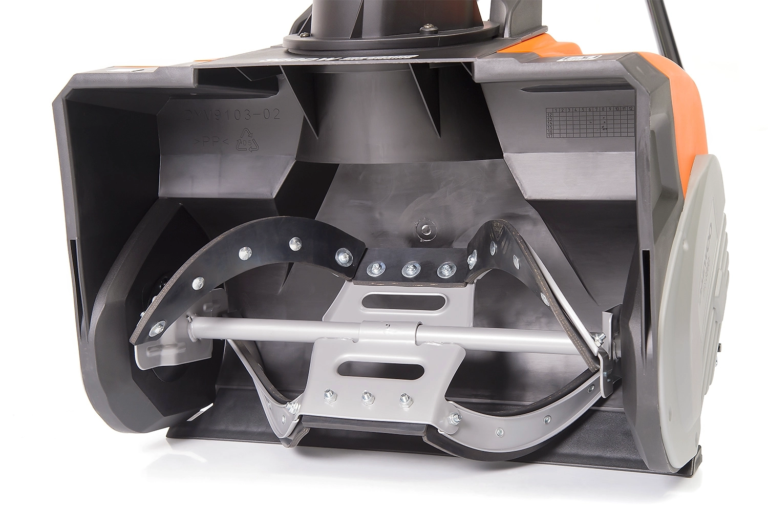 - Удобная поворотная рукоятка может менять направление выброса снега на угол до 190 градусов.