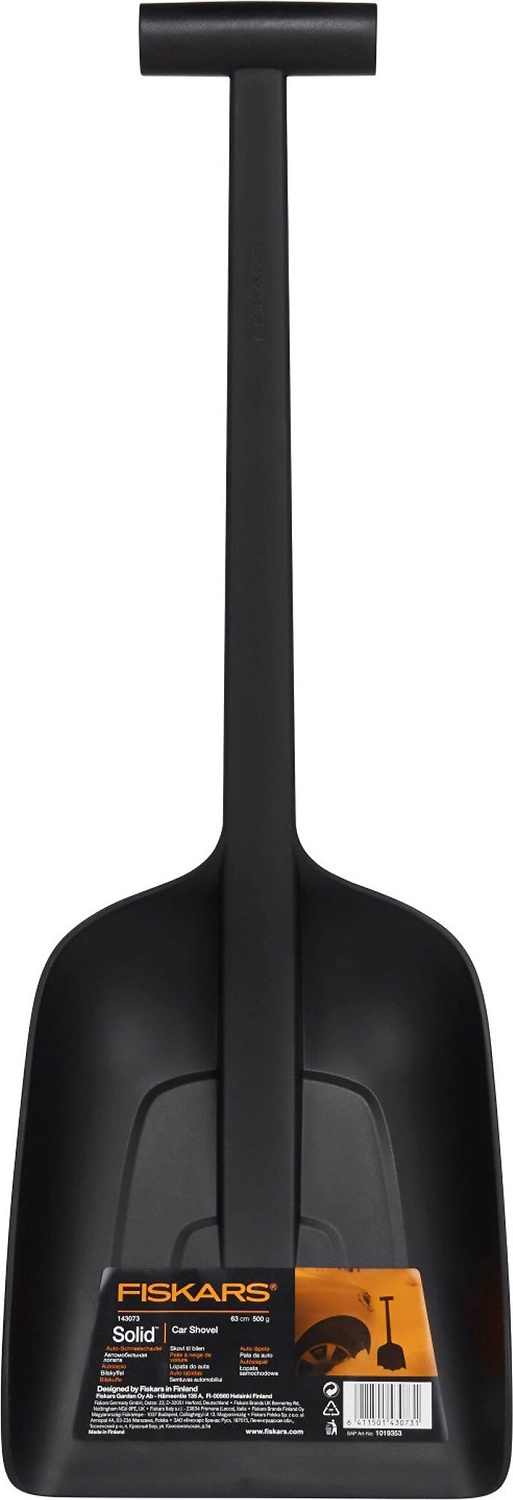Лопата Solid с эргономичной ручкой разработана финской компанией Fiskars специально для автомобилистов. Она отличается повышенной прочностью, надежностью и малым весом. Цельная конструкция из термоустойчивого пластика с ребрами жесткости выдерживает большие нагрузки. Лопата необходима для уборки плотного снега около автомобиля, откапывания застрявшего в песке или земле транспортного средства. Благодаря легкости и компактности лопату Fiskars можно без проблем хранить в багажнике.