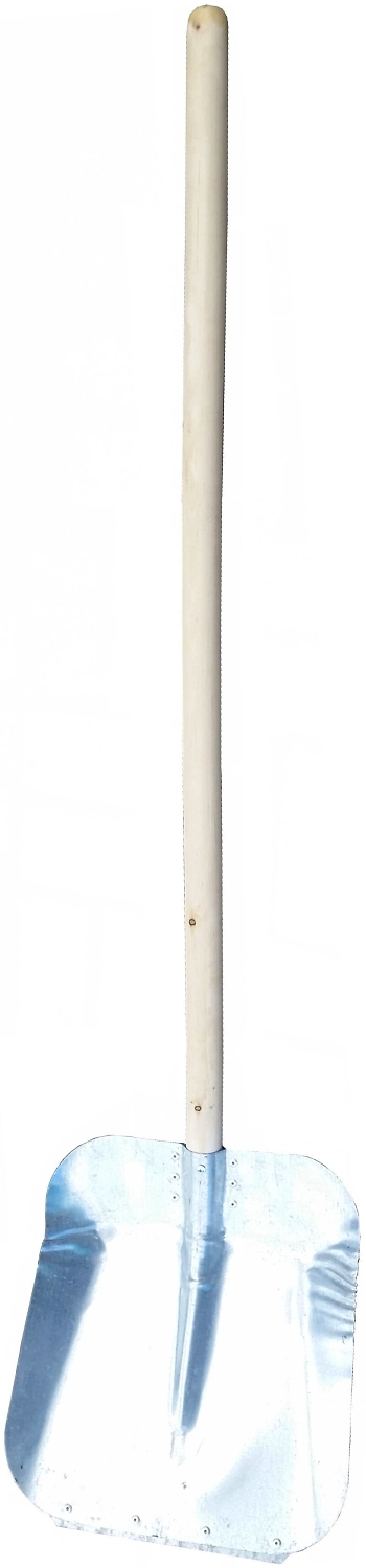 Данный вид лопаты предназначен для уборки снега не только в средней полосе, но и в суровых климатических условиях, где использование пластиковой лопаты представляется невозможным. Конструкция лопаты усилена приклёпанной металлическими заклёпками планкой, а металл, покрытый порошковой краской, из которого она изготовлена, делаёт её прочной. Небольшие размеры позволяют использовать её также и для зерновых работ. Данный вид лопаты поставляется в сборе с деревянным черенком 1-го сорта. Толщина металла - 0,8мм.