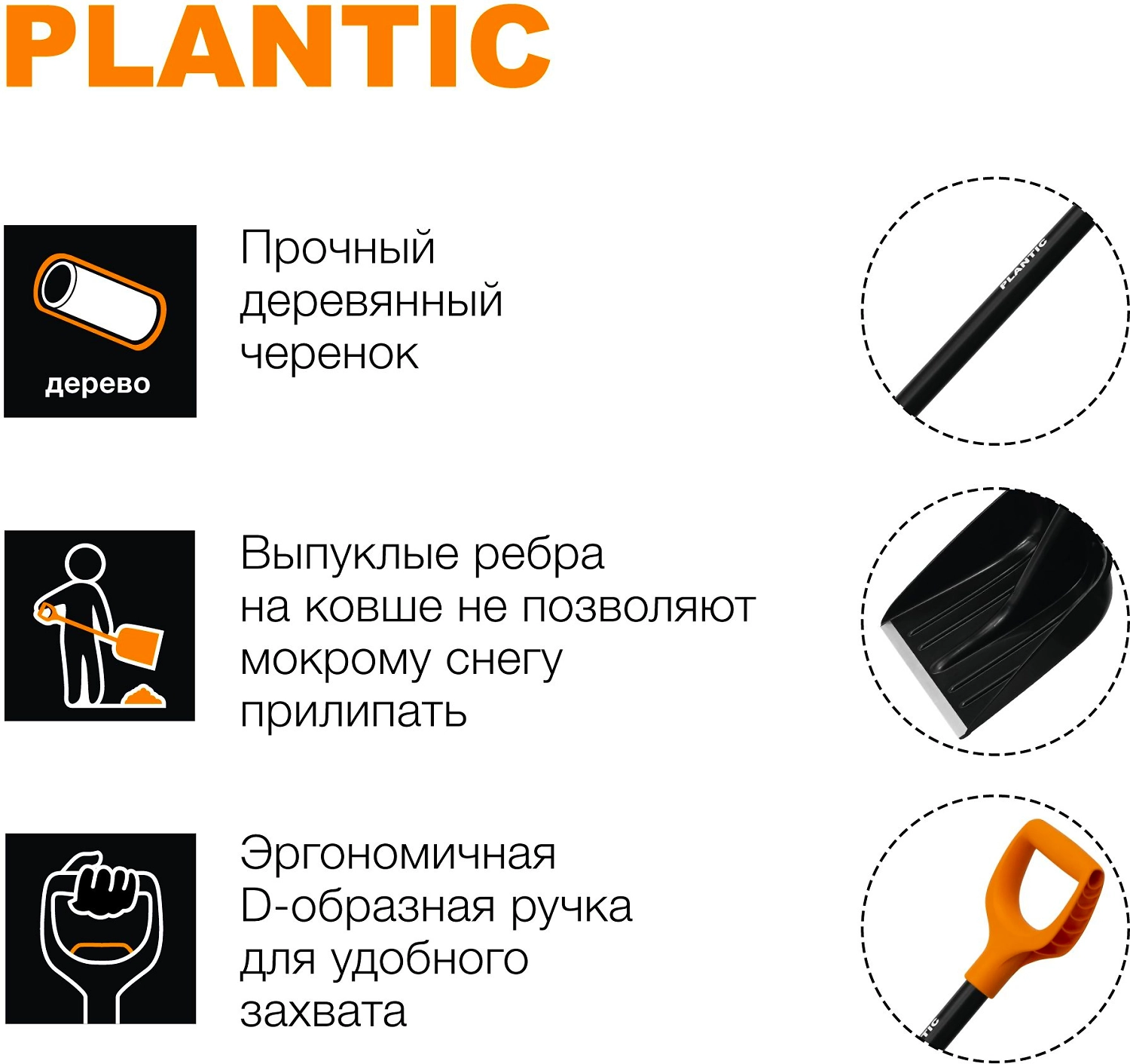 Лопата Plantic Snow подходит для уборки снега на крыльце, на небольших поверхностях, вокруг машины.