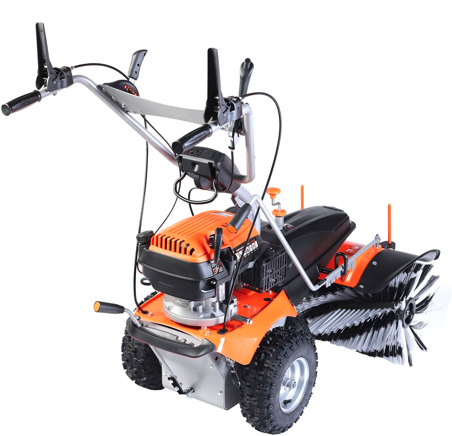 Подметальная машина с шириной щетки 80 см применяется для уборки территорий на садовом участке в любое время года: осенью для уборки листвы, зимой для уборки свежевыпавшего снега. Особенно эффективно использовать для уборки тротуарной плитки.