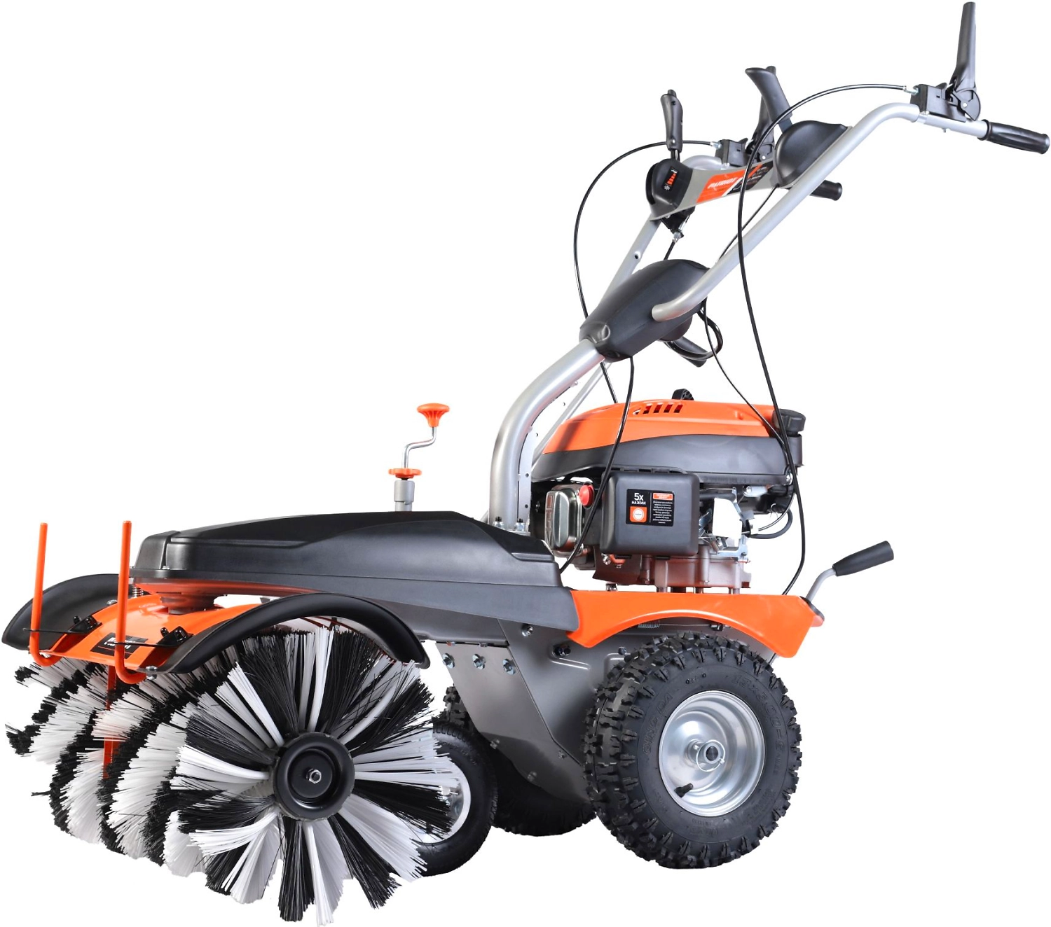 Подметальная машина с шириной щетки 80 см применяется для уборки территорий на садовом участке в любое время года: осенью для уборки листвы, зимой для уборки свежевыпавшего снега.