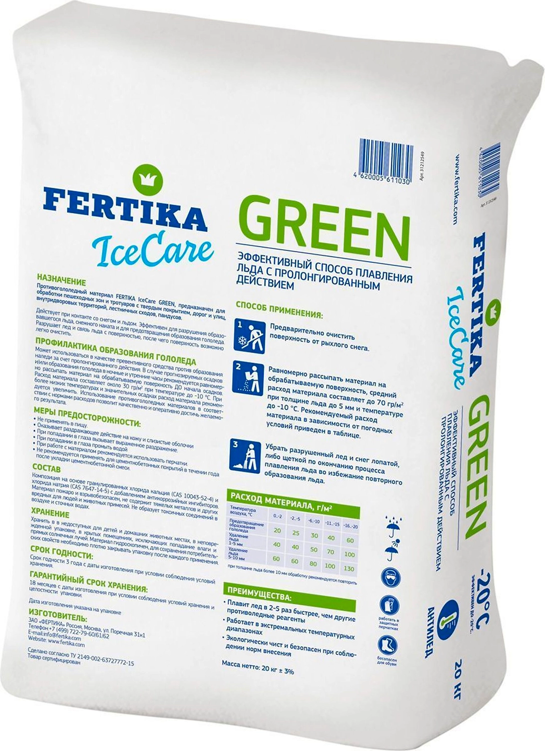 Противогололедный реагент FERTIKA Icecare Green 20 кг