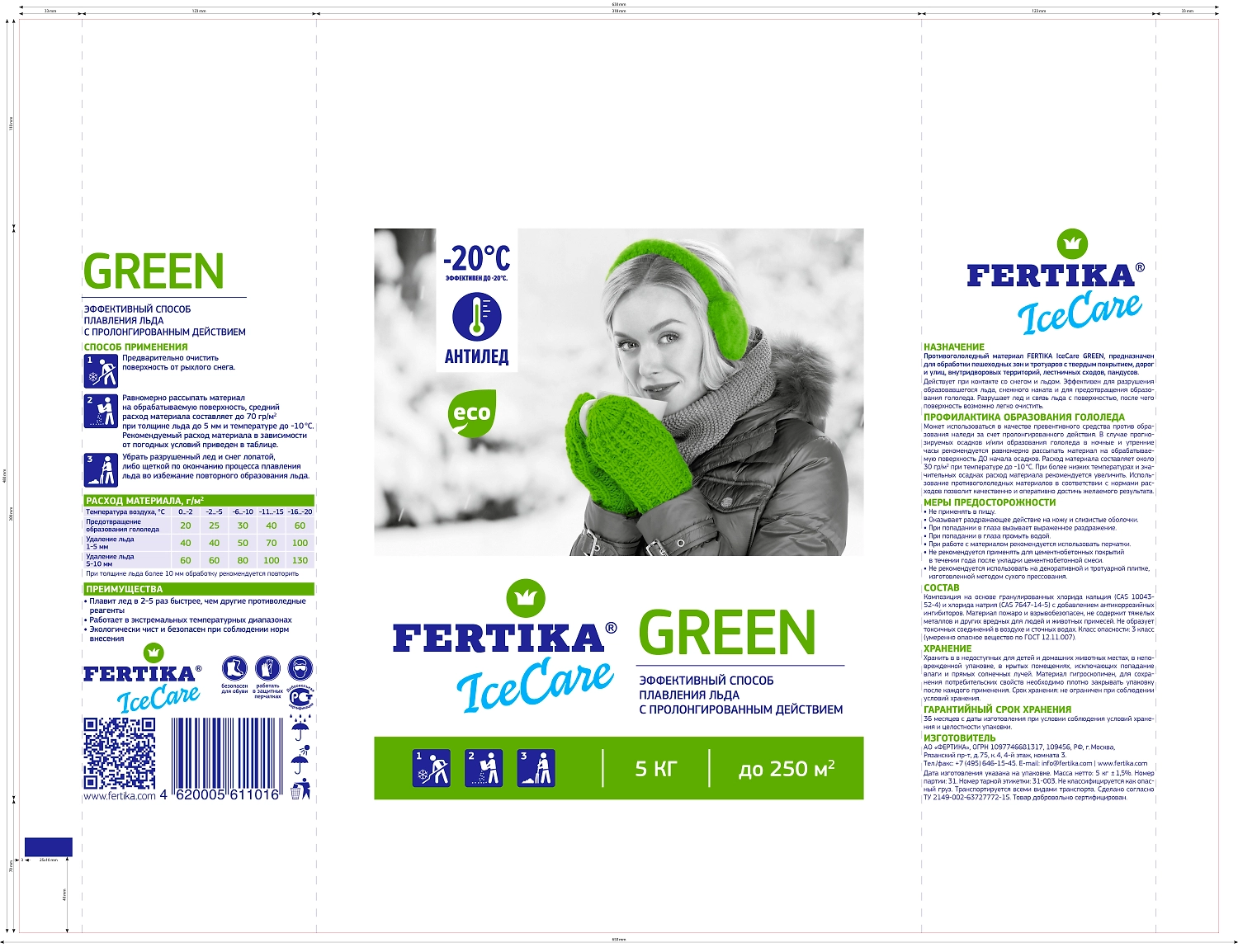 Противогололедный реагент FERTIKA Icecare Green 5 кг (пакет)