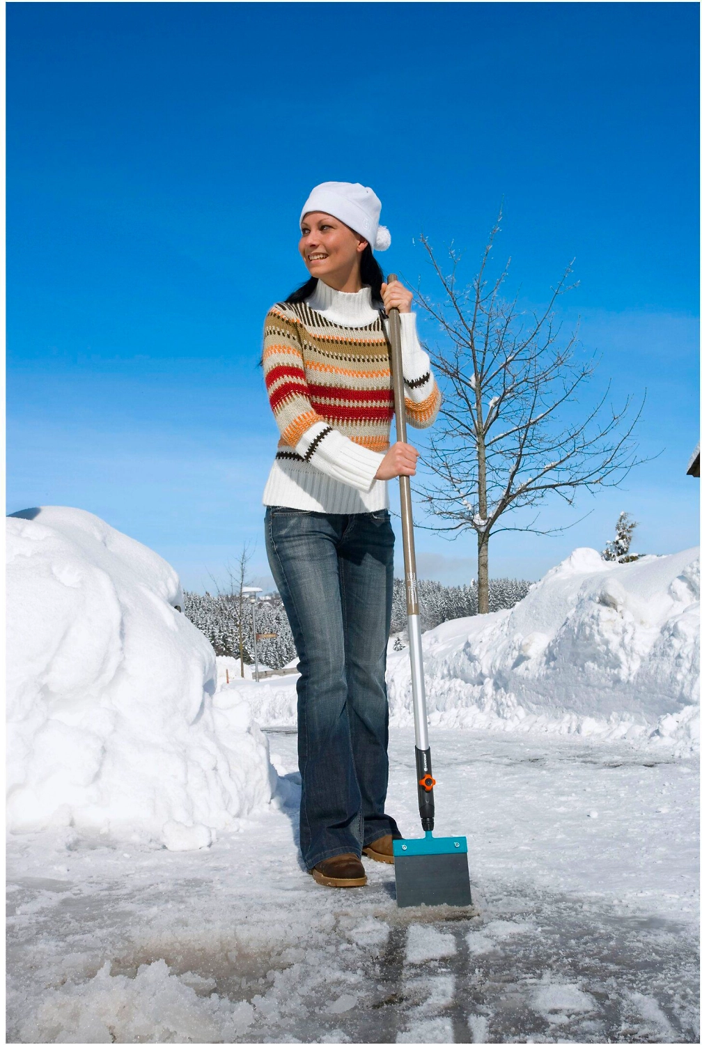 Прочное сменное лезвие из пружинной стали легко удаляет опасную мелкую наледь и плотный снег с поверхностей. Не менее эффективен скребок и для удаления таких загрязнений, как засохшие пятна гудрона или закаменевшая земляная грязь. Скребок GARDENA подходит для всех ручек Комбисистемы.