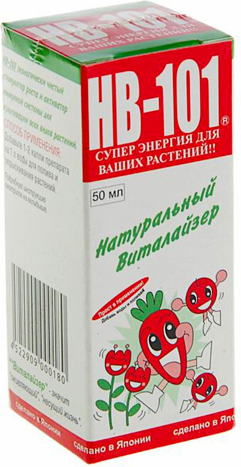 НВ-101 - концентрированный универсальный стимулятор роста и иммуномодулятор для всех видов растений. Состав изготовлен из экстрактов гималайского кедра, кипариса, сосны и подорожника, не содержит искусственных добавок.