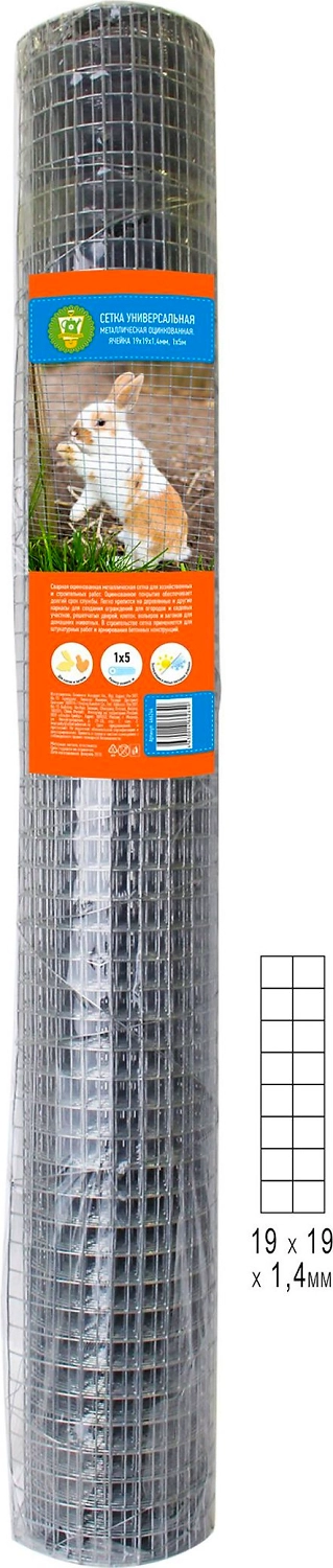 Сетка металлическая оцинкованная GARDEN SHOW ячейка 19х19х1,4мм 1х5 м