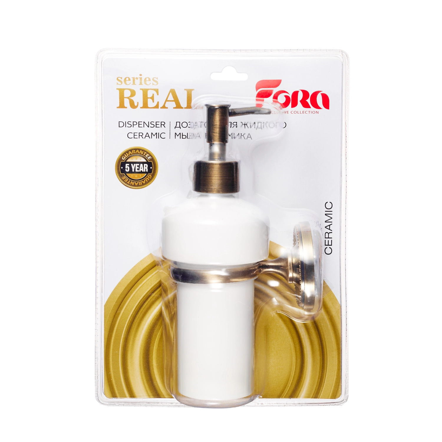 Вы пользуетесь жидким мылом, но фабричные флаконы с мыльным составом не вписываются в интерьер ванной? Мы предлагаем вам дозатор для жидкого мыла «REAL» FORA в классическом дизайне. Настенное крепление и функциональная часть дозатора сделаны из металла с высококачественным покрытием бронзового цвета. Корпус изделия изготовлен из белоснежной керамики. Благодаря сочетанию благородных оттенков металла и керамики дозатор «REAL» FORA станет достойным украшением ванной комнаты.