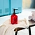 Дозатор для жидкого мыла красного цвета объёмом 500 мл. Основа изделия изготовлена из прочного стекла, а верхний наконечник - из пластмассы.