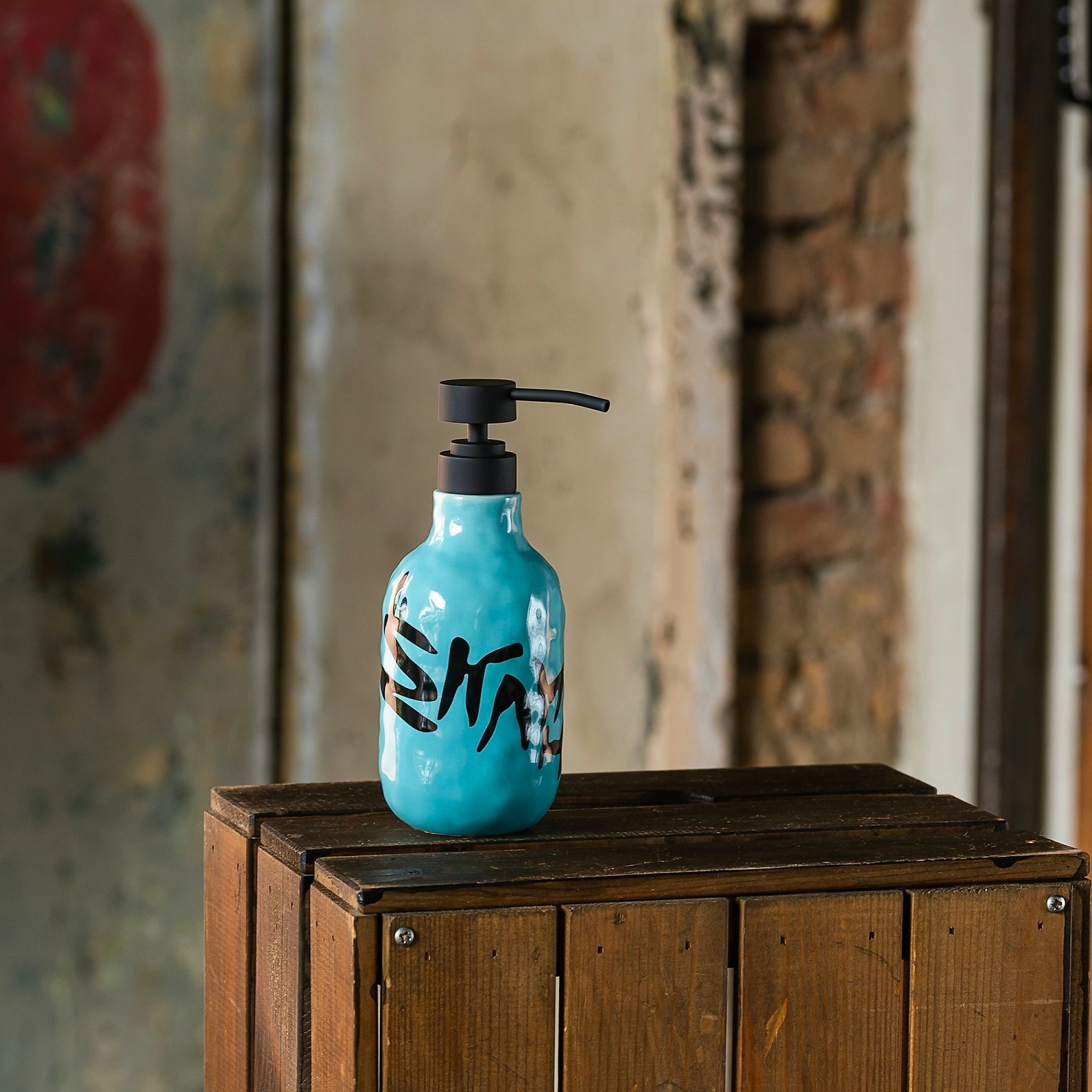 Керамический дозатор для жидкого мыла объемом 0,4 л. Дозатор с носиком удобен в использовании, подходит не только для жидкого мыла, но и шампуней, геля для душа. Привлекательный дизайн и цветовое оформление делают изделие оригинальной деталью интерьера.