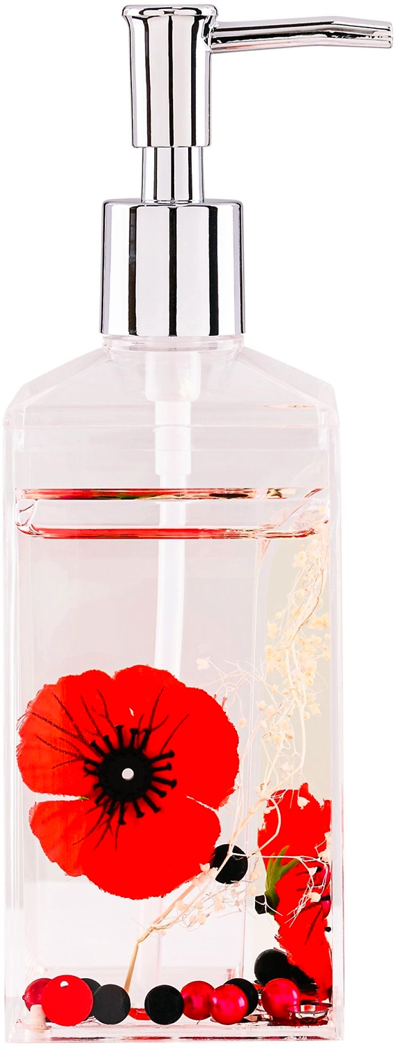 Алый мак, использованный для украшения данной модели, выглядит необычайно ярко и привлекательно. Этот дозатор для жидкого мыла станет центром интерьерной композиции и добавит в нее красок. Для удаления загрязнений, изделие необходимо протирать мягкой влажной салфеткой.